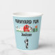 Fun Fun Fun 1er Anniversaire Farm Animal Kids Party Paper Cup. Personnalisez avec un nom pour la fête d'anniversaire ou l'événement. Animaux de ferme, cochon, vache, mouton, coq, fournitures pour la fête agricole. www.SamAnnDesigns.com