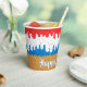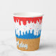 Gobelets en papier Anniversaire America Ice Cream - Personnalisez ces gobelets en papier d'anniversaire avec des paillettes et un motif de cône de glace américain. Super mignon glace en trois couleurs de glace rouge, blanche et bleue avec des paillettes en forme d'étoile assorties tout en bas sur un cône gaufré.