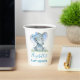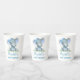 Aquarelle Baby Elephant avec une corneille bleue sur Baby shower de fougères tasses en papier. Texte bleu.