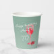 Verre rouge moderne Aquarelle 70e Anniversaire Coupes de papier de fête. 70e anniversaire tasses de fête avec un verre de vin rouge aquarelle et raisins. Le texte est un script blanc et est entièrement personnalisable - personnalisez-le avec votre nom et votre âge.