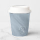 Une police de signature manuscrite combinée et des arrière - plans en marbre veiné à la parties scintillant ajoutent juste la bonne touche pour un mariage élégant dans la plupart des pièces de cet ensemble mariage. La tasse en papier de coordination montrée ici présente une conception minimaliste de vos noms, initiales et date mariage sur un arrière - plan bleu poussiéreux, aquarelle. Recherchez ID816 pour voir d'autres pièces et choix de couleurs pour cet ensemble.