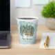 Parfaites pour les fêtes de Noël et les divertissements saisonniers quotidiens, ces tasses de papier bois rustique personnalisées présentent une scène hivernale aquarelle d'une famille de cerfs dans la pinède, avec Joyeux Noël en caractères de caractères sous-jacents, ainsi que la personnalisation. *Si vous avez besoin d'aide pour la conception ou si vous souhaitez cette conception sur d'autres produits, veuillez me contacter par Zazzle.