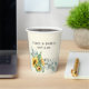 Tournesol rustique et élégant à l'aquarelle et eucalyptus sur des tasses en papier blanc.
