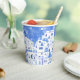 Une aquarelle moderne bleu et blanc d'Oia sur l'étonnante île grecque de Santorin. Art original de Nic Squirrell.