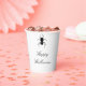 Joyeuses tasses en papier Halloween, avec une jolie conception d'araignée noir et blanc et noir personnalisable typographie de script lettering. Idéal pour ajouter une touche éffrayante à votre prochaine fête d'Halloween ou de costume.