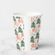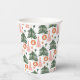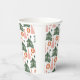 Jolis arbres de Noël verts boho rustiques rose et rouille sur ces gobelets en papier pour fête de Noël.