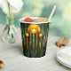 De magnifiques tasses en papier art déco vintage avec un motif géométrique dans des nuances de vert, de turquoise et d'or. Le centre de l'image représente le soleil levant.