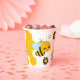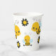 Baby shower mignon avec des tasses en papier de détail d'abeille boursouflante. Une adorable petite famille d'abeilles de trois. produits pour bébés de Ricaso. Détaillé avec des abeilles, des fleurs et du miel.