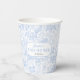Elégante Coupe en papier Baby shower Floral Toile de Jouy, avec un charmant thème animal safari. Cette coupe de papier magnifiquement conçue présente une montgolfière ainsi que d'adorables animaux de safari comme une girafe, un éléphant, un zèbre et un lion, le tout face à un arrière - plan de chinoiserie à fleurs bleues. Avec son esthétique vintage et sa typographie gracieuse, cette Paper Cup donne le ton d'une célébration intemporelle. Entièrement personnalisable pour correspondre aux détails de votre événement, c'est le choix idéal pour un baby shower à thème safari pour garçon, alliant charme et sophistication. Partie d'une collection. Éléments correspondants disponibles.