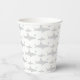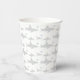 Un requin baby shower tasses en papier montrant une maman et un petit requin dans un motif répétitif avec des coeurs bleus. Ajoutez ces tasses de papier à votre requin ou sous le baby shower marin.