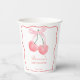 Coquette arc rose cerisier blanc baby shower bébé tasses en papier monogrammé modèle, cerises mignonnes avec une bordure en ruban arc baby shower tasses en papier personnalisées, baby shower cerise tasses en papier customisé fruit d'été baby shower table personnalisée tasses en papier imprimé