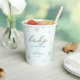 Un baby shower simple, moderne, élégant et chic neutre sexe tasse de papier personnalisé avec un arrière - plan blanc texturé, hiver, le mot BABY couvert de strass (pas de vrais strass, c'est un effet numérique) et dans le script de calligraphie moderne, typographie moderne et quelques strass couverts de flocons de neige. Un design chic et intemporel pour une future maman qui célèbre son baby shower pendant les mois d'hiver, novembre, décembre ou janvier ou même au-delà, tant qu'il y a de la neige !