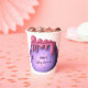 Adorable, un bébé brasse des tasses en papier baby shower pour fille d'Halloween avec l'illustration d'un chaudron de sorcière bouillonnant dans les couleurs rose et violet. Illustré et dessiné par Patricia Alvarez.