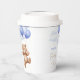 Baby Shower Paper Cups decorated with an adorable teddy bear riding balloons in the clouds.
