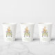 Ces coupes en papier baby shower vert de l'armée, neutres pour les hommes et les femmes, présentent une jolie illustration de bébés animaux (lion, zèbre, éléphant, singe et girafe) entassés dans un véhicule safari et le nom et le "Baby shower" de la mère dans la coordination de l'écriture verte de l'armée. Vous pouvez personnaliser le texte sur le véhicule (par exemple, "C'est un garçon !") et la date de la douche sur la plaque d'immatriculation ou laisser vide. Parfait pour conduire par baby shower.
