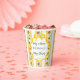 Fleur de soleil en baby shower de fleurs coupes en papier monogrammed modèle, bandes jaunes rétro tournesols boucles de papier ondulé baby shower tasses en papier personnalisées, élégantes coupes en baby shower de tournesol vintage, tournesol vert et jaune baby shower de table personnalisée