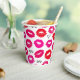 Baisers rouge à lèvres rose et rouge avec petits coeurs noirs et motif de la Saint Valentin XOXO