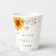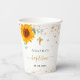 Pour un baptême élégant, neutre du genre. Un arrière - plan blanc chic. Décoré de tournesols rustiques aquarellés, feuilles de verdure eucalyptus, sprigs, verdure, feuilles faux or. Une fausse croix d'or. Personnalisez et ajoutez le nom de l'enfant et une date. Lettres noires et dorées.