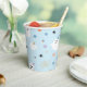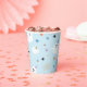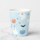 Beau bébé fantôme bleu Halloween tasse en papier. Design moderne sur le thème de l'Halloween pour une fête éffrayante ! Cette tasse en papier présente des toiles d'araignée, des fantômes, des citrouilles, des chauves-souris, des araignées, des feuilles, des cornes, des étoiles et des marguerites. Cette tasse en papier est idéale pour les fêtes d'anniversaire du petit garçon !