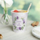 belles fleurs de lilas violet et blanc avec quelques feuilles vertes tasse en papier pour fête d'anniversaire botanique.