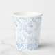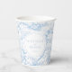 Elégant motif floral bleu clair romantique en Chinoiserie Tasses en papier mariage de style porcelaine chinoise avec monogramme marié et marié.