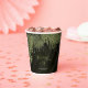 Évoquez une nuit d'été moody sous les tropiques, avec des bijoux en cascade des feuilles de palmiers en diamant incrustés ou supprimez les couches de bijoux pour un look légèrement plus conservateur. Cet ensemble est composé de feuilles chatoyants et d'arrière - plans texturés dans des teintes allant de l'olive claire au vert d'algues foncées. La tasse en papier mariage montrée ici a une bordure de feuilles étincelants, un message personnel de "Merci" et les noms de la mariée et du marié et la date du mariage. Entrez facilement vos coordonnées en utilisant le modèle fourni. Affichez le lien de collection sur cette page pour voir tous les éléments correspondants dans ce bel ensemble ou recherchez ID830 pour voir d'autres options de couleur pour cette conception.