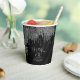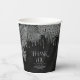 Optez pour un look glamour Old Hollywood en utilisant les pièces de cette suite mariage comme indiqué, avec des bijoux en cascade des feuilles de palmiers incrustés de diamants ou supprimer les couches de bijoux pour un look un peu plus conservateur. Cet ensemble présente des feuilles en argent chatoyant contre un arrière - plan texturé au charbon de bois foncé. La tasse en papier mariage montrée ici a une bordure de feuilles étincelants, un message personnel de "Merci" et les noms de la mariée et du marié et la date du mariage. Entrez facilement vos coordonnées en utilisant le modèle fourni. Affichez le lien de collection sur cette page pour voir tous les éléments correspondants dans ce bel ensemble ou recherchez ID830 pour voir d'autres options de couleur pour cette conception.