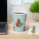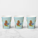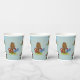 Un oiseau bleu devant une mignonne maison d'oiseaux. Cette conception semble vraiment efficace sur ces tasses de papier