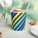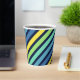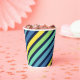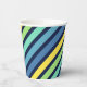 Tasses en papier avec un motif coloré bleu vert et jaune rayures. Ils fabriquent de grandes tasses pour n'importe quelle fête. Pour ajouter du texte, cliquez sur personnaliser. *Veuillez noter que le filigrane Zazzle qui apparaît dans l'aperçu du zoom n'apparaîtra PAS sur le produit imprimé final. © Bois de rose et agrumes