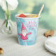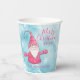 Créez des tasses de papier de Noël personnalisées uniques pour votre fête de famille avec un design élégant qui comprend un joyeux dicton de Noël, un joyeux gnome en rose et des modèles de texte pour l'année et le nom de famille. Ces tasses en papier bleu clair et rose avec motif enneigé sont parfaites pour les vacances d'hiver.