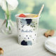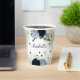 Belle romantique bleu poussiéreux et bleu marine fleurs avec verdure feuille botanique tasse de papier de fête.