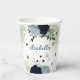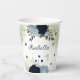 Gobelets En Papier Bleu poussiéreux et bleu marine fleurs verdure