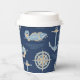 Une Coupe En Papier Nautique Vintage Bleu Conçue Avec Poisson, Ancres, Boussole Et Vieux Navires