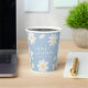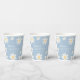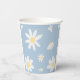 Boho Daisy Floral Paper Cups est caractérisé par un style boho avec des oeuvres d'art floral margueuses et bleu poussiéreux.