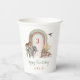 Des tasses de fête Boho avec des animaux safari aquarelle et un arc-en-ciel neutre avec de l'herbe de pampas. Personnalisez avec l'âge et le nom de l'enfant.