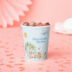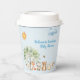 Les tasses en papier de baby shower de la faune boisée présentent une belle aquarelle avec un renard, un mouton, un ours et un petit canard. Ils sont rassemblés sous un bel arbre et il y a des fleurs tout autour d'eux et des petites abeilles douces qui ramassent du nectar. Un nuage moelleux est dans le ciel et le soleil brille. La typographie dit "Bienvenue au Baby shower du NOM" et vous remplissez simplement le nom de la maman à être. Le design apparaît des deux côtés de la tasse.