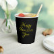 Cette belle tasse de papier dit à chacun d'avoir un Joyeux Nouvel An dans un script de calligraphie sophistiqué.