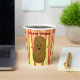 Jolie patate de caricature marron heureux avec un grand sourire heureux sur son temps de fête du visage au-dessus de sa tête et un arrière - plan rayé orange et jaune.