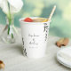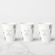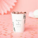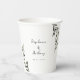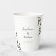 Calligraphie verte moderne mariage tasses en papier. Branche d'olivier botanique pour un mariage de style italien.