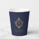 Gobelets En Papier Boy Baptism Marine Blue Faux Gold Foil Crest Vinta