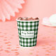 Les bisons verts et blancs contrôlent les tasses de papier de Noël avec un rectangle blanc au centre qui dit "Joyeux Noël" dans une police de caractères vert foncé avec votre nom en dessous dans une police sans serif moderne. Parfait pour un séjour de vacances. Personnalisez-le avec votre nom et votre texte dans la barre latérale. Pour voir le Motif Plaid vert et blanc de conception En vichy sur la coordination des approvisionnements de fête, cliquez sur le lien Collection Arts Rocklawn. numériquement créé une image. Copyright ©Claire E. Skinner. Tous droits réservés.