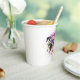 Ce design présente un joli portrait d'un carlin portant des lunettes de soleil au coeur rose et un arc rose dans un style aquarelle éclatant.