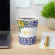 Un monogramme moderne carrelage méditerranéen et citrons design mariage avec un arrière - plan de mur de lavage blanc de style méditerranéen. Un design mariage à thème de destination méditerranéenne qui utilise des illustrations aquarelles de carreaux et citrons bleus, blancs et jaunes pour créer un design mariage d'été élégant. Une destination de charme espagnol, grec, italien ou portugais Design d'été utilisant une typographie de script classique. Une élégante tasse en papier mariage à thème bleu, blanc et jaune méditerranéen avec des éléments modernes. Des invitations de mariage et d'autres articles de papeterie sont également disponibles.