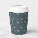 Cette tasse en papier présente un motif branché de silhouettes de tête de cerf avec des bois incurvés, des flèches stylisées et de minuscules flocons de neige avec un effet texturé dans les nuances de bleu guet sur un arrière - plan turquoise profond. Un texte optionnel "Joyeux Fêtes" et un étiquette ont été fournis pour ajouter votre nom et/ou un autre texte. Faites une recherche ID861 à ID864 pour voir d'autres options de couleurs et d'autres produits dans cet ensemble moderne de design de Noël.