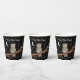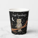 Ces tasses en papier sont recouvertes de noir d'étoiles blanches avec une lune blanche en croissant et une chouette brune avec de jolis yeux portant un collier en cristal violet assis sur une branche d'arbre. Customisez votre texte avec les modèles à l'avant et à l'arrière.