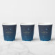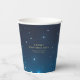 Coupe en papier de Noël avec étoiles. Idéal pour vos fêtes de fin d'année, évènements d'affaires, gala ou occasions spéciales. Couleurs bleu et or. Utilisez le modèle pour créer votre propre tasse de papier de Noël.