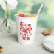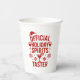 Quote: Official Holiday Spirits Taster. Red text. Decorated with glasses of wine, Santa's hat, coctail glass and snow crystals,