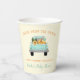 Cette adorable tasse en papier baby shower d'automne est une façon douce d'offrir un verre à vos invités ! Cette conception comprend un camion vintage vert clair transportant un bébé citrouille à la maison depuis le patch, sur un arrière - plan crème.