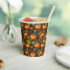 Grands et petits citrouilles, feuilles verts et dorés, et raisins violets luxuriants se combinent pour faire un beau thème Thanksgiving sur cette tasse de papier. Belle image de récolte pour votre table!