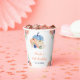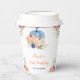 Des tasses de papier rustiques de fête d'anniversaire avec des arrangements floraux bleus marine et rousses. Parfait pour un anniversaire d'automne. Les mots peuvent être changés en fonction de vos propres détails ou exigences